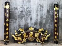 Cuốn thư câu đối dơi ngậm đồng tiền Kt 155 x 60 x 3 Câu đối : 147 x 18 x 3 Gỗ lim