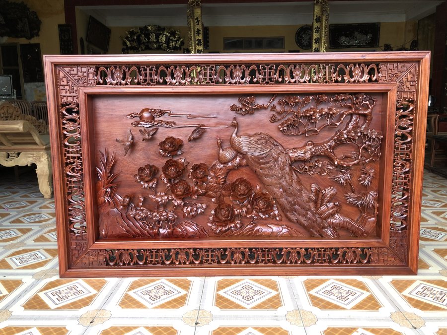 Tranh phu thê viên mãn gỗ hương kt 173-105-10cm