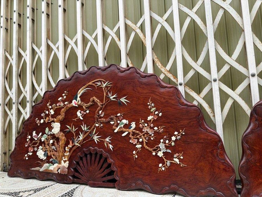 Giường phương luời ngũ phúc Gỗ gụ kt 2m40-80