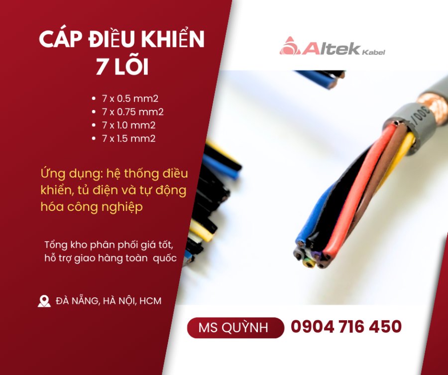 Cáp 7x0.5, 7x0.75, 7x1.0, 7x1.5 dùng cho tự động hóa, thang máy sẵn kho Đà Nẵng, Hà Nội