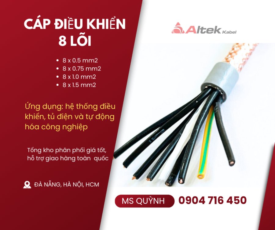 Cáp điều khiển 8 lõi, cáp tín hiệu 8 lõi Altek Kabel 8x1.5, 8x0.5, 8x1.0, 8x0.75