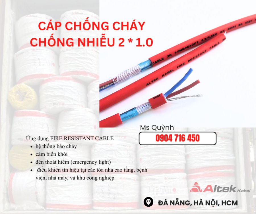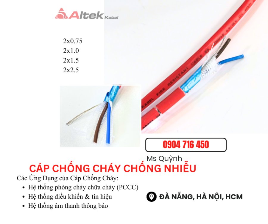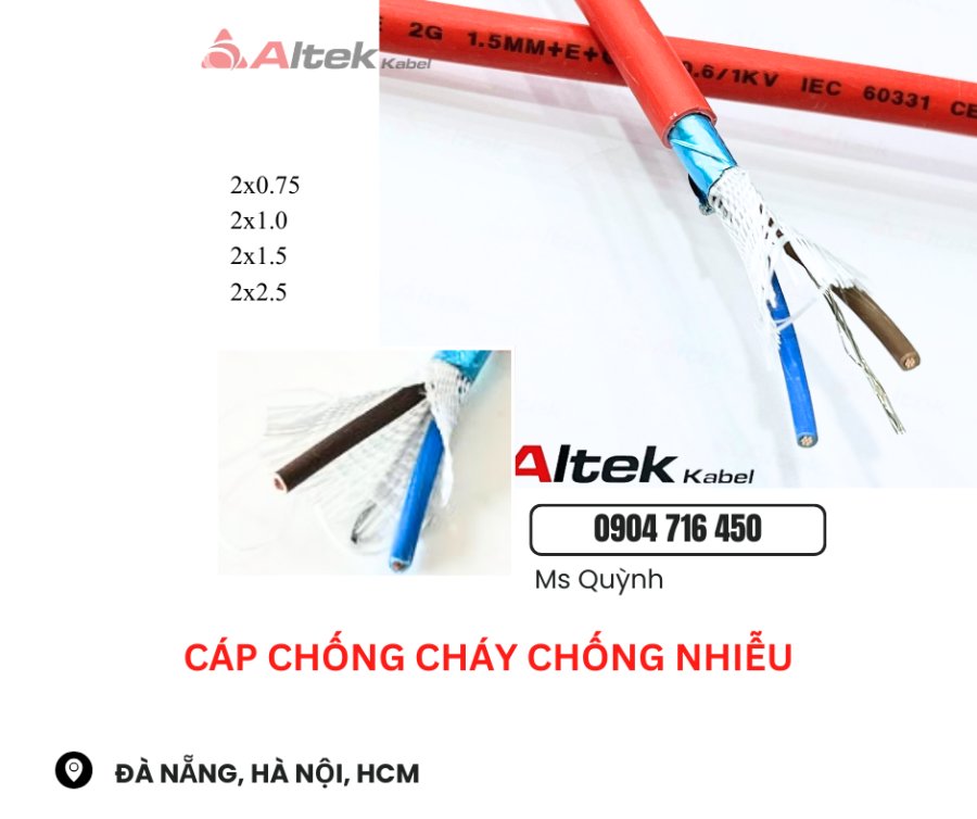 Cáp Chống Cháy,Báo Cháy 2x0.75, 2x1.0, 2x1.5, 2x2.5 Altek Kabel Sài Gòn, Hà Nội, Đà Nẵn