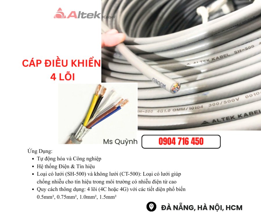 Cáp điều khiển 4c 4 lõi Altek Kabel Đà Nẵng, Hà Nội, Bình Định, Hòa Bình, Sơn La, Hà Nam