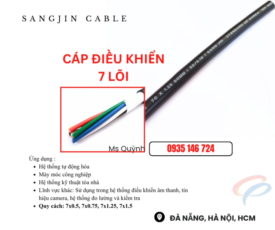 Cáp sangjin 7x0.5, 7x0.75, 7x1.25, 7x1.5 Sài Gòn, hồ Chí Minh, Bình Dương