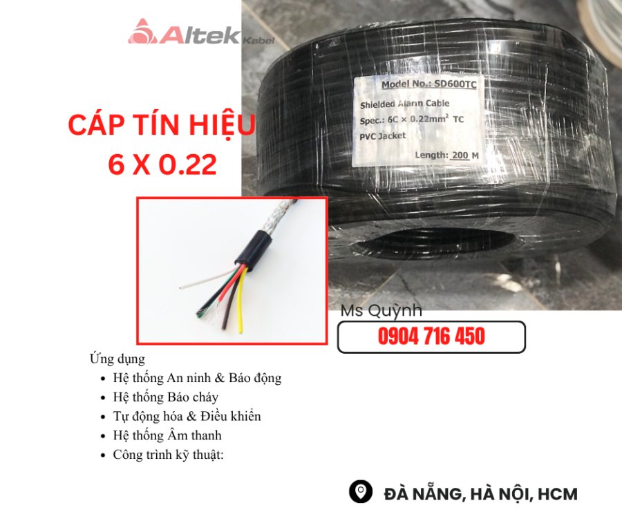 Cáp tín hiệu âm thanh 6x0.22 RVVP Altek Kabel Đà Nẵng, Hà Nội, Sài Gòn, Tây Ninh, Tam kỳ