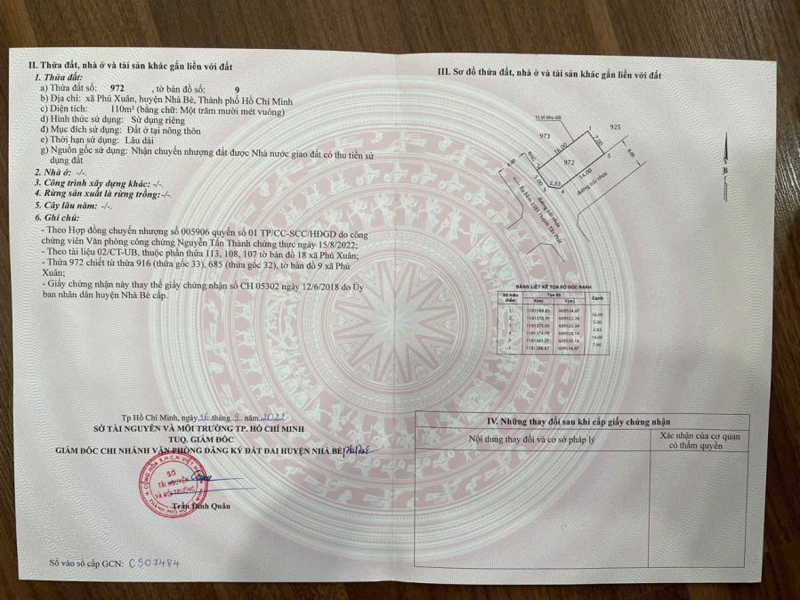 Bán nền thổ cư đường nhựa 1/ tỉnh lộ 15, xã Nhuận Đức dt 110m2 ( 90m2 thổ) giá 1,1 tỷ