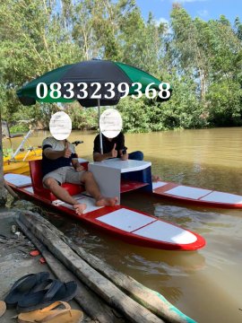 Thuyền 2 phao, 2 người đi câu cá, dạo hồ.