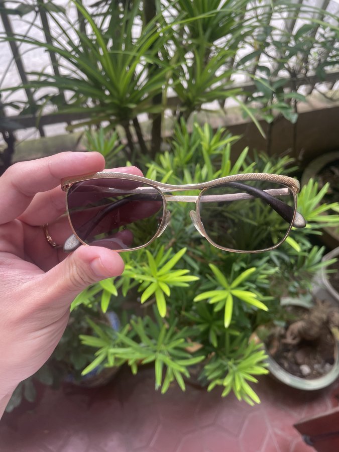 Kính râm bọc vàng Pháp cổ ngang 12,3 cm , dài gọng 13,2 cm , ngoại hình đẹp
