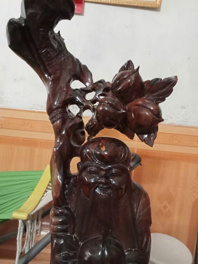 Em có pho tượng đục ông Thọ, 1 tay cầm cây gậy, 1 tay cầm quả đào, trên đỉnh đầu có tán cây 3 quả đào; hàng gốc cây gỗ cẩm ( có nhiều người nói gỗ trắc); cao nặng khoảng 80-85cm; 40kg, đục tay hơn 10 năm rồi; em muốn nhượng lại cho bác nào đam mê ạ. Vui lòng liên hệ Tùng (zalo: 0965910368).