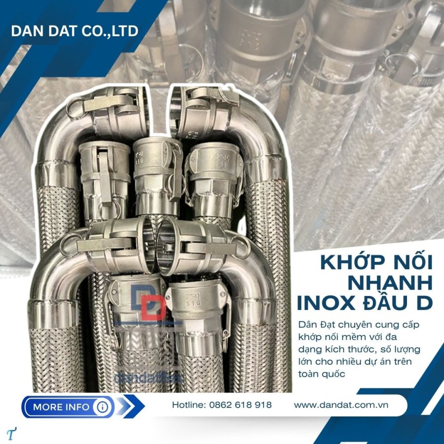 Khớp nối nhanh đầu camlock, khớp nối nhanh inox đầu AD, khớp nối mềm inox Clamp