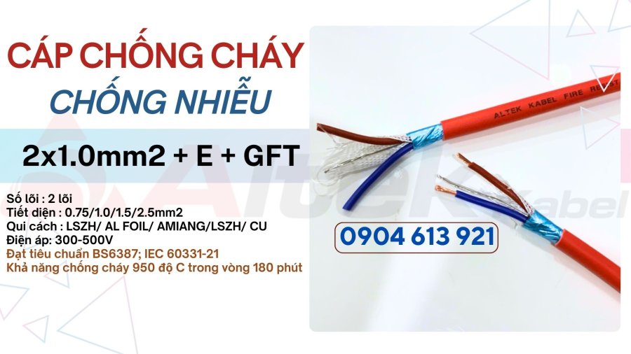 Cáp báo cháy chống nhiễu chống cháy 2x1x1.0mm2 Altek Kabel