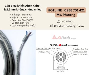 Cáp điều khiển Altek Kabel 2x1.5mm không chống nhiễu Đà Nẵng, Hồ Chí Minh, Hà Nội