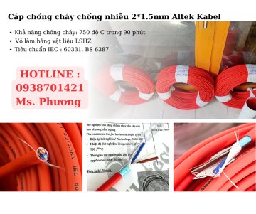 Cáp chống cháy chống nhiễu 2*1.5mm LSZH Altek Kabel