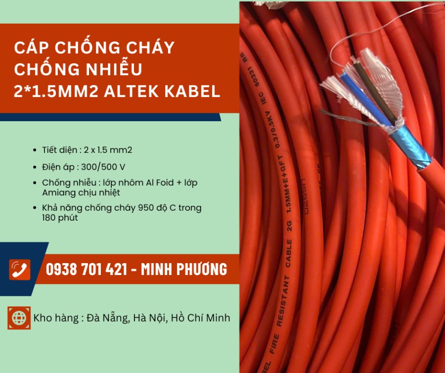 Cáp chống cháy chống nhiễu 2x1.5mm2 Altek Kabel giao ngay Hà Nội, Nam Định