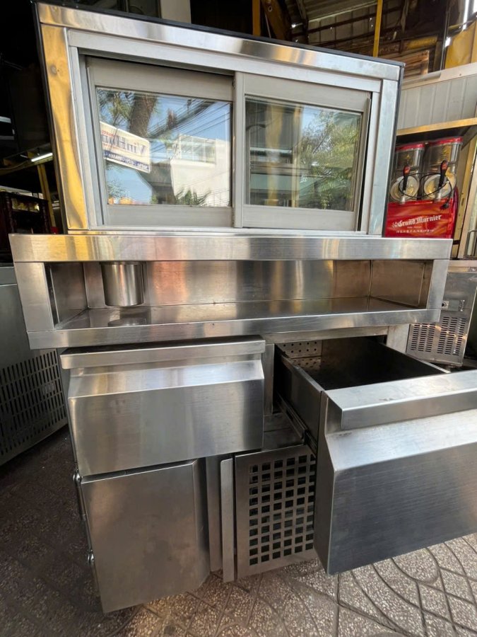 THANH LÝ TỦ MÁT MẶT KÍNH TRƯNG BÀY BÁNH KEM + BÀN MÁT INOX – HIỆU TAIWAN