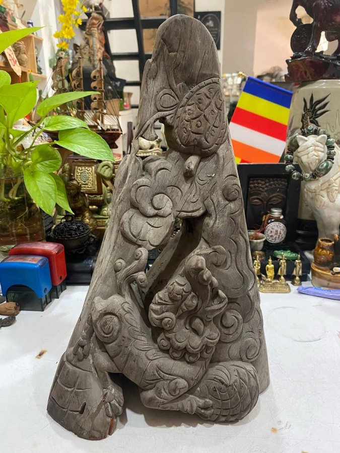 Phù điêu Chóp Gỗ Tạc Thủ Công Hoạ tiết Lân Quy