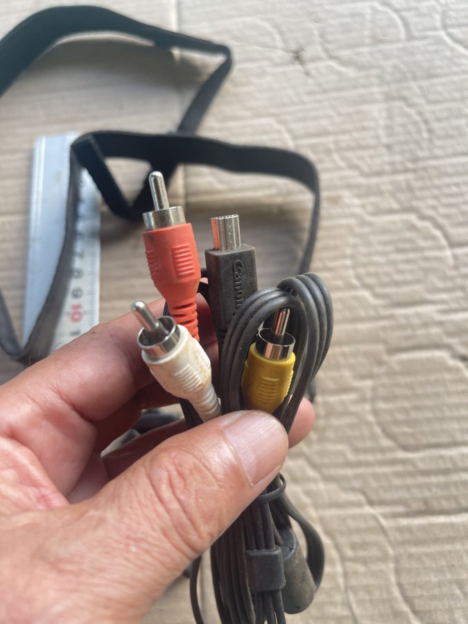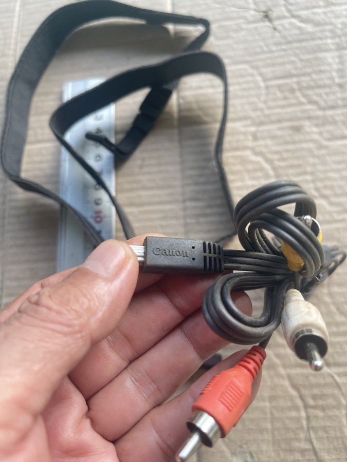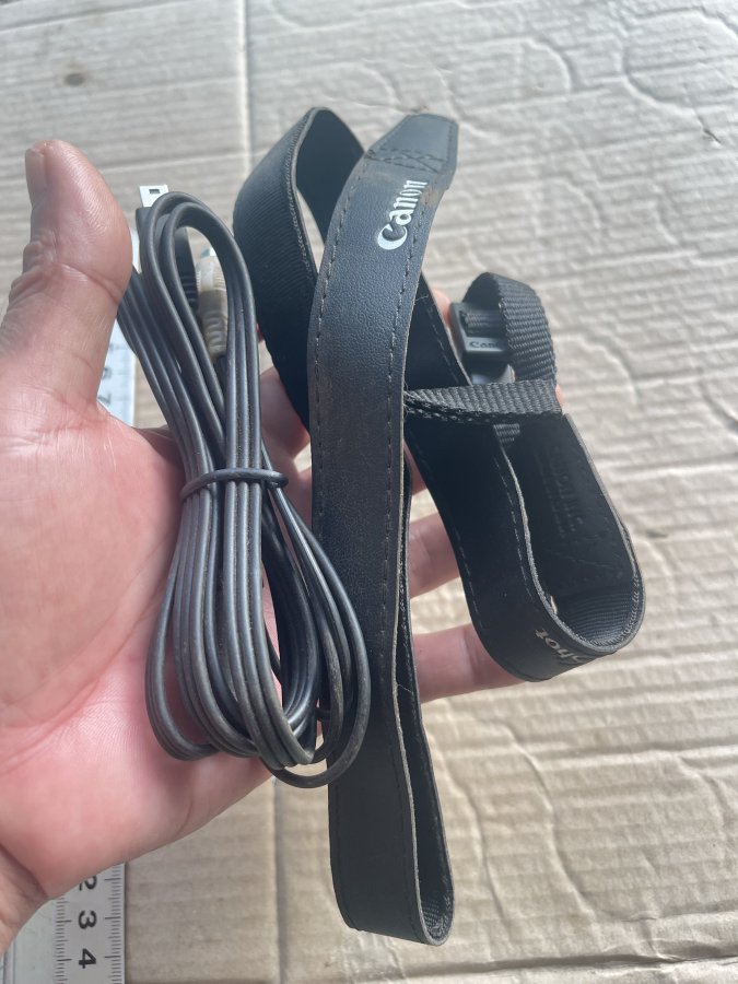 Sản phẩm gồm một dây đeo máy ảnh và một dây cable chuyển đổi âm thanh, video của Canon dòng EOS còn lành nguyên như mới, do chưa vệ sinh nên có dinh bụi bẩn.