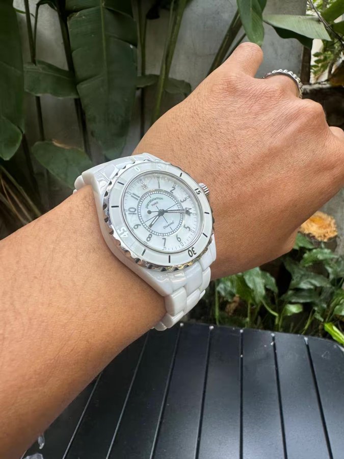 - Size: 41 chưa núm-máy Nhật- Kính thường -đính Kim cương-Full Đá Ceramic 🚰 Chống nước: 30 M ⏰ Hình thức 98% - mới trên 10triêu💰- 1tr450 - ( ko hộp )