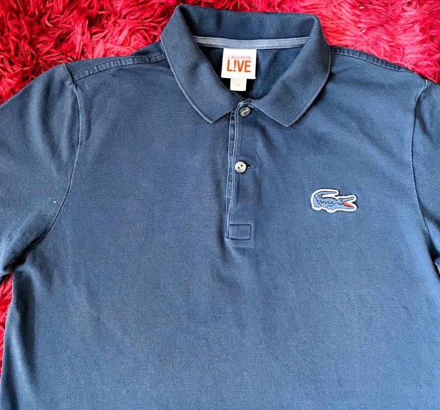 - Thương hiệu: Chính hãng Lacoste L!VE. Điểm nhấn cực "bén" là logo cá sấu há miệng viền trắng thêu nổi vô cùng sắc nét, khác biệt hoàn toàn với bản classic. Điểm xuyết thêm vạch trắng tinh tế ở viền tay áo.