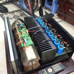 Máy chạy 5 kênh mô-đun độc lập gồm 5 tăng phô xuyến,10 tụ to và 20 sò vuông đen lớn.