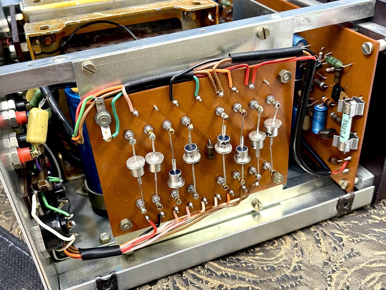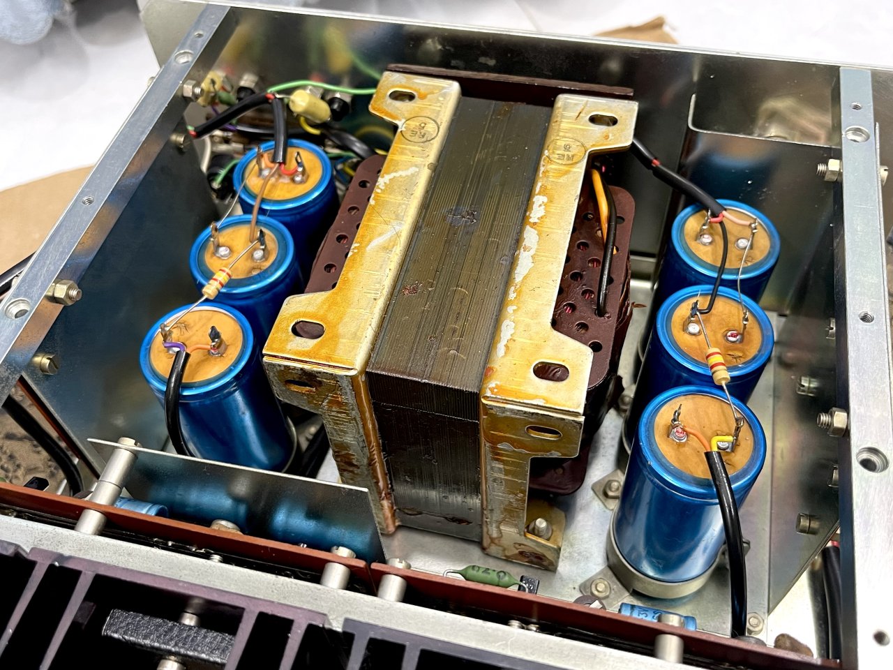 - Pre mạch 2 tầng. Nội thất quá đẹp, linh kiện zin, Pow chạy 4 sò nhôm chân vàng ( 2 đực, 2 cái) 6 tụ Philips lớn nhìn cực gấu