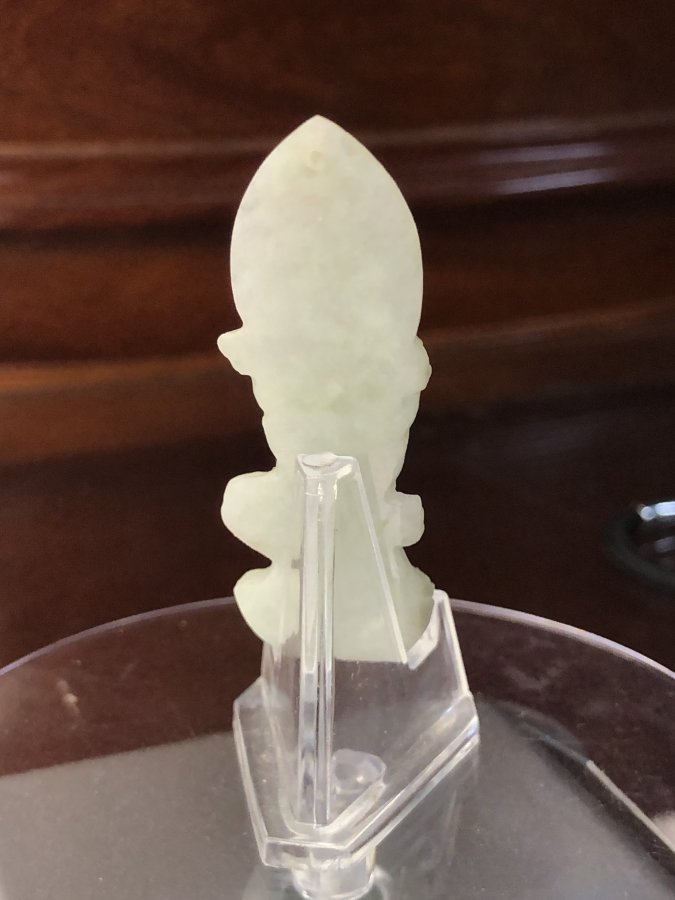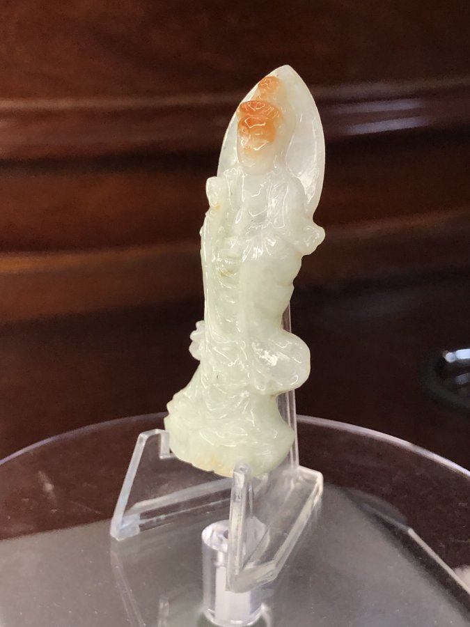 Quan Âm dáng đứng. Cẩm thạch A. Kt 57 x 20 x 6 mm.