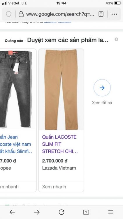 Em quần khaki hàng hiệu LACOSTE cực vip và đẹp gl ae . Màu hiếm lắm ạ . Giá new 2tr7