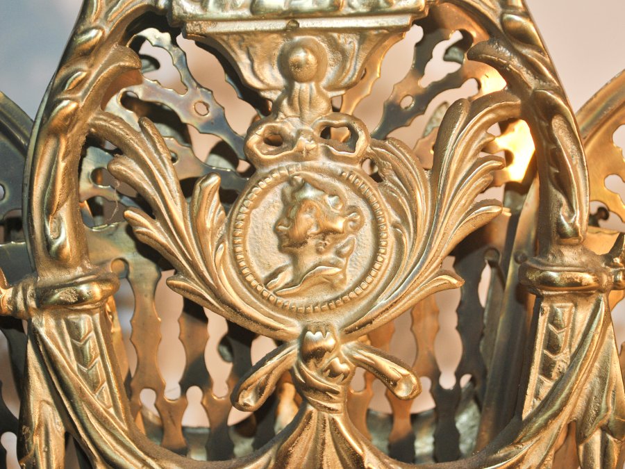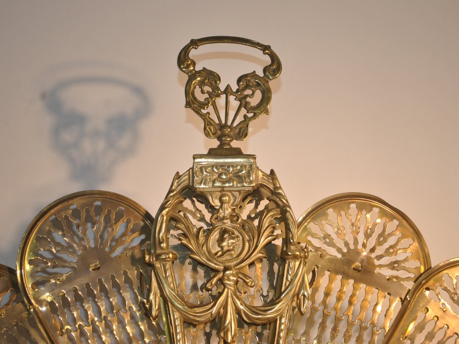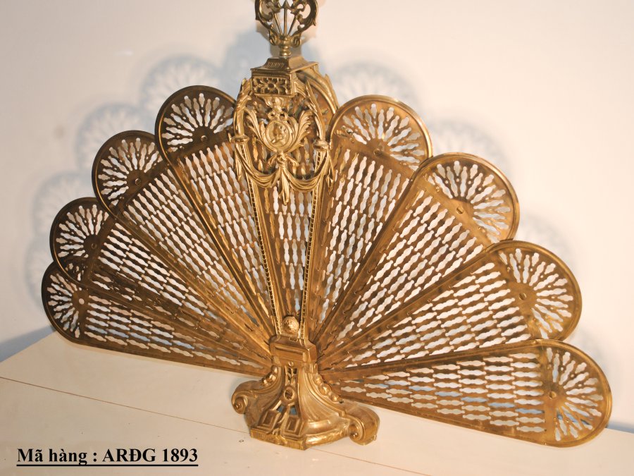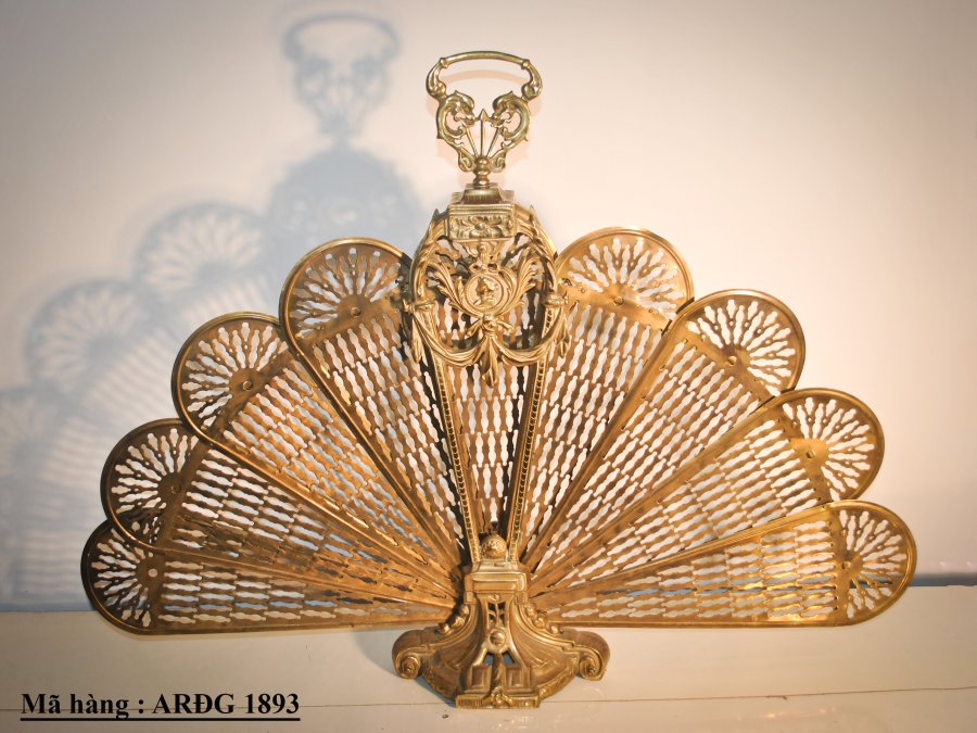 Quạt chắn lò sưởi cổ điển bằng đồng, hàng sưu tầm Châu Âu.