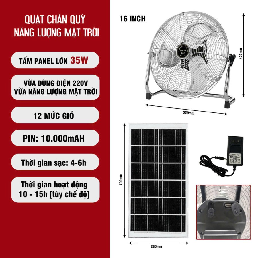 -- Quạt Chân Quỳ Năng Lượng Mặt Trời SHCET 16 Inch 35W –