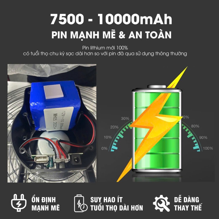 Pin Dung Lượng Lớn 10.000mAh – hoạt động 12–24h tùy chế độ