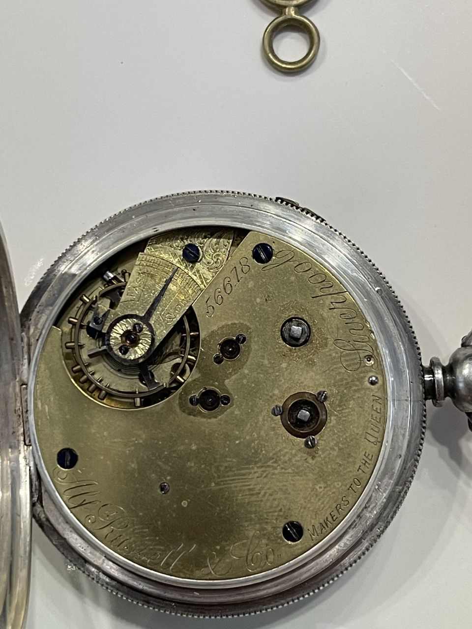 Giao lưu các bác chiếc Quýt Anh cổ siêu hiếm. 3 kim, vỏ bạc khối. Dòng này làm cho Nữ hoàng với dòng chữ khắc tinh sảo "Makers to The Queen".