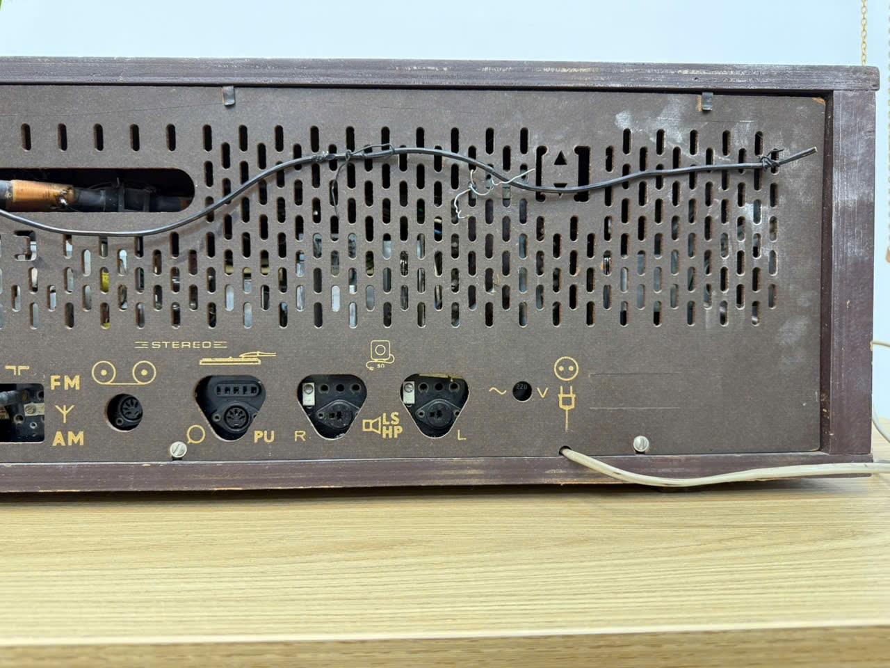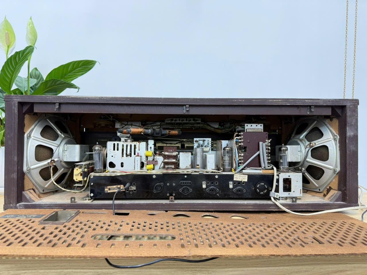 📻 Máy chạy bóng đèn, vỏ gỗ có ít dấu vết thời gian.