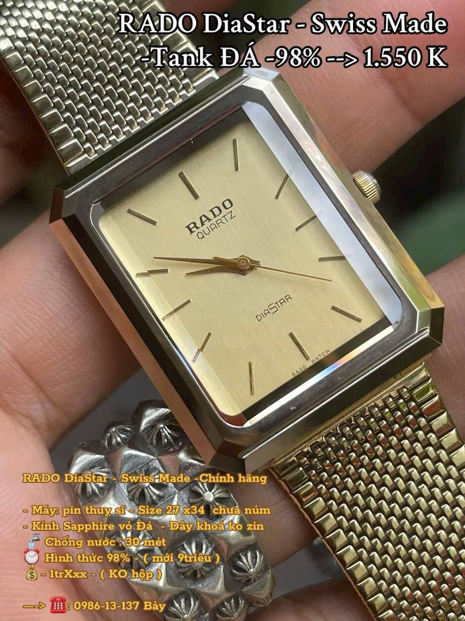 RADO Đá - Swiss V8 size 27x34, - kính Sapphire -Tank Vintage 98% ---> 1.550 K : 098613135