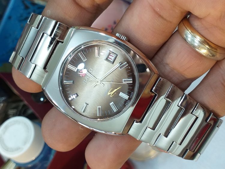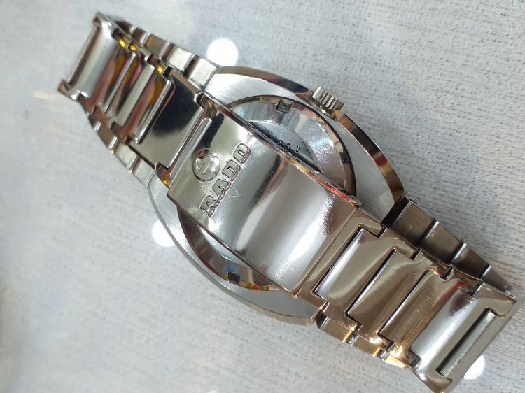 Rado nai phóng. Size: 35 (ko tính núm), núm + dây khóa zin có logo. Máy vàng Auto 1 lịch, mặt zin T. Giá call: 0908.756695 - Tuan Anh.