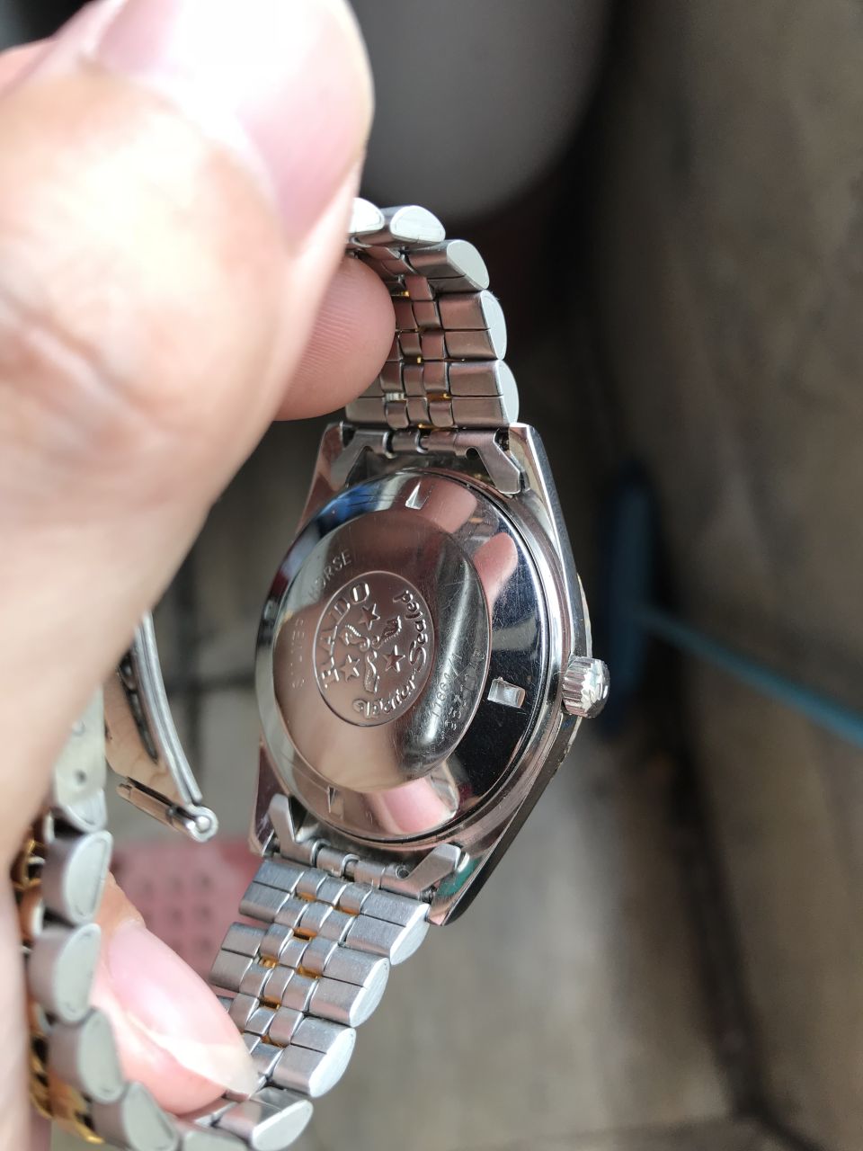 Đồng hồ size 36 k tính núm, máy tự động. Lịch Lộc vị trí 6h. Hoạt động tốt!