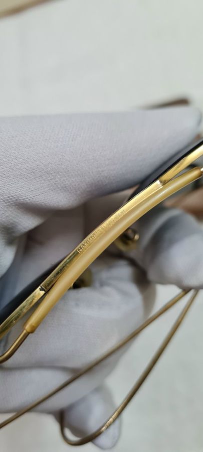 🕶 Toàn thân bọc vàng 12k rất dày như giáp xe tăng chưa bong tróc. Ngang kính 14cm. Càng móc chống rơi.