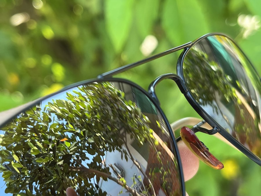 Gọng kính Metal đen mờ. Tròng nâu 3k chuyển màu có tráng gương phía ngoài