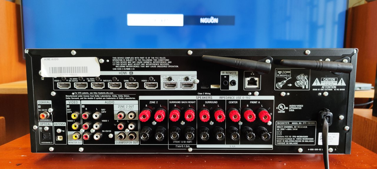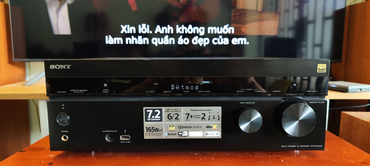 Amply 7.2 sony DN1080 với công suất max mỗi kênh lên đến 165w x 7 kênh và 2 sub điện, tương thích loa trở kháng 6ohm-16ohm, máy có HDMI 4k ARC giải mã đời mới Dolby Atmos, DTS-X v.v..., tích hợp wifi, Lan, Bluetooth, usb chơi nhạc lossless, Hires DSD lên đến 5.6mhz, chơi Airplay qua lan hay wifi, Chromecast, spotify, điều khiển qua app v.v...chức năng chơi nhạc stereo cho tất cả các kênh, Amply xuất mỹ điện thế sử dụng 120v (khách cắm điện 100v hay 110v đều đc), mẫu này date tháng 8/2020.
