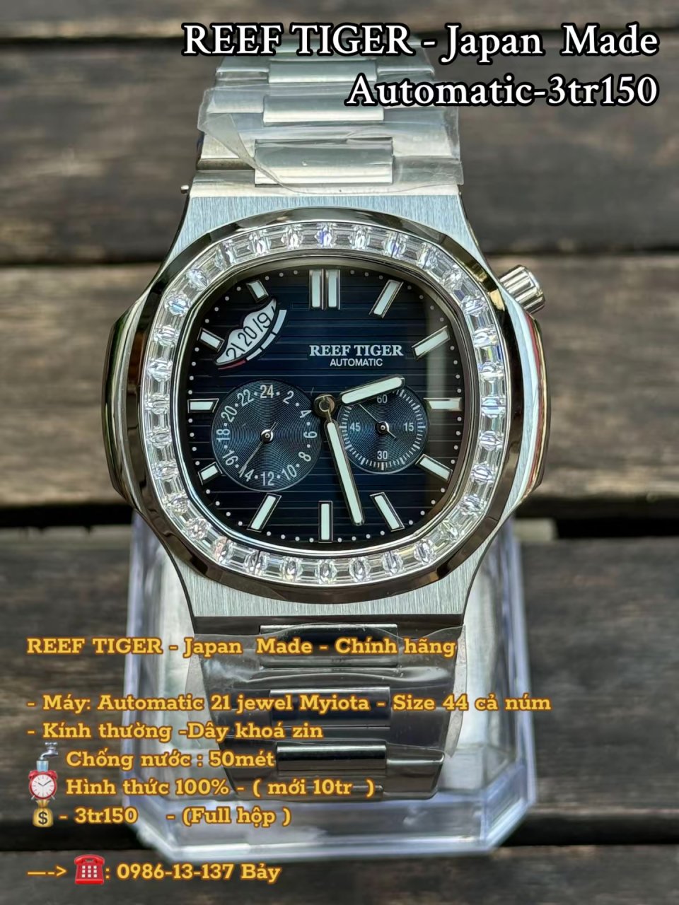 - Máy: Automatic 21 jewel Myiota - Size 44 cả núm - Kính thường -Dây khoá zin 🚰 Chống nước : 50mét ⏰ Hình thức 100% - ( mới 10tr ) 💰- 3tr150 - (Full hộp )