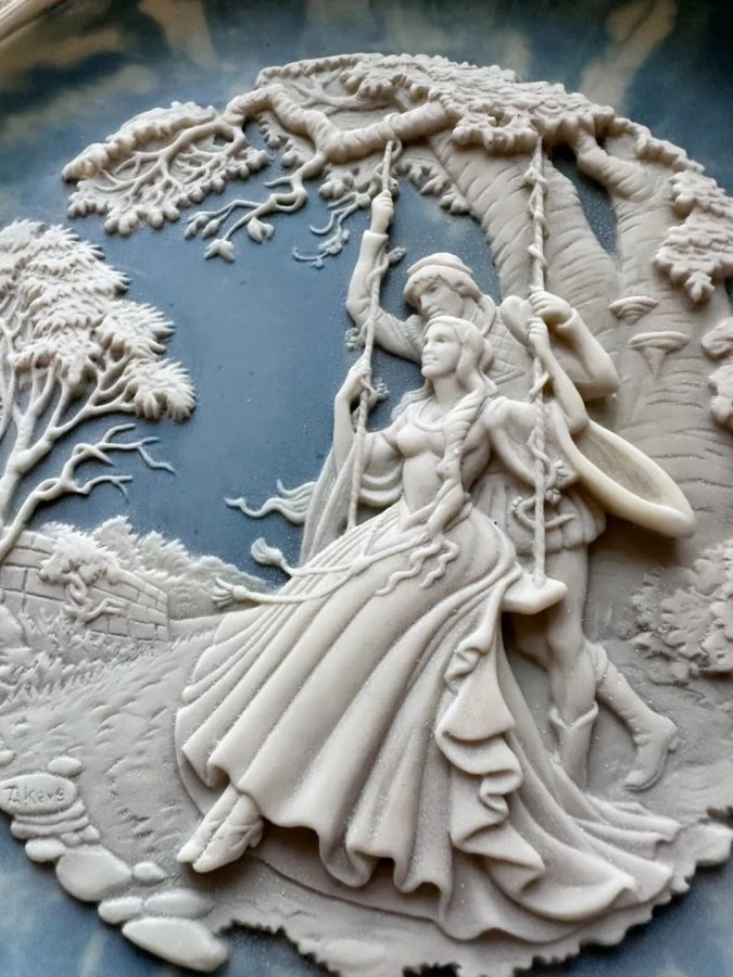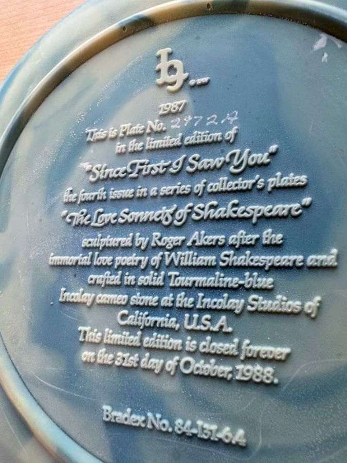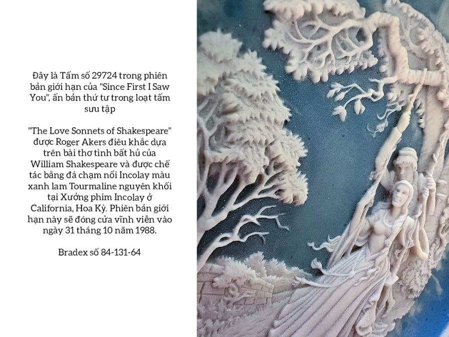 Roger Akers điêu khắc dựa trên bài thơ tình bất hủ của William Shakespeare và được chế tác bằng đá chạm nổi Incolay màu xanh lam Tourmaline nguyên khối tại Xưởng phim Incolay ở California, Hoa Kỳ. Phiên bản giới hạn này đã đóng cửa vĩnh viễn vào ngày 31 tháng 10 năm 1988.