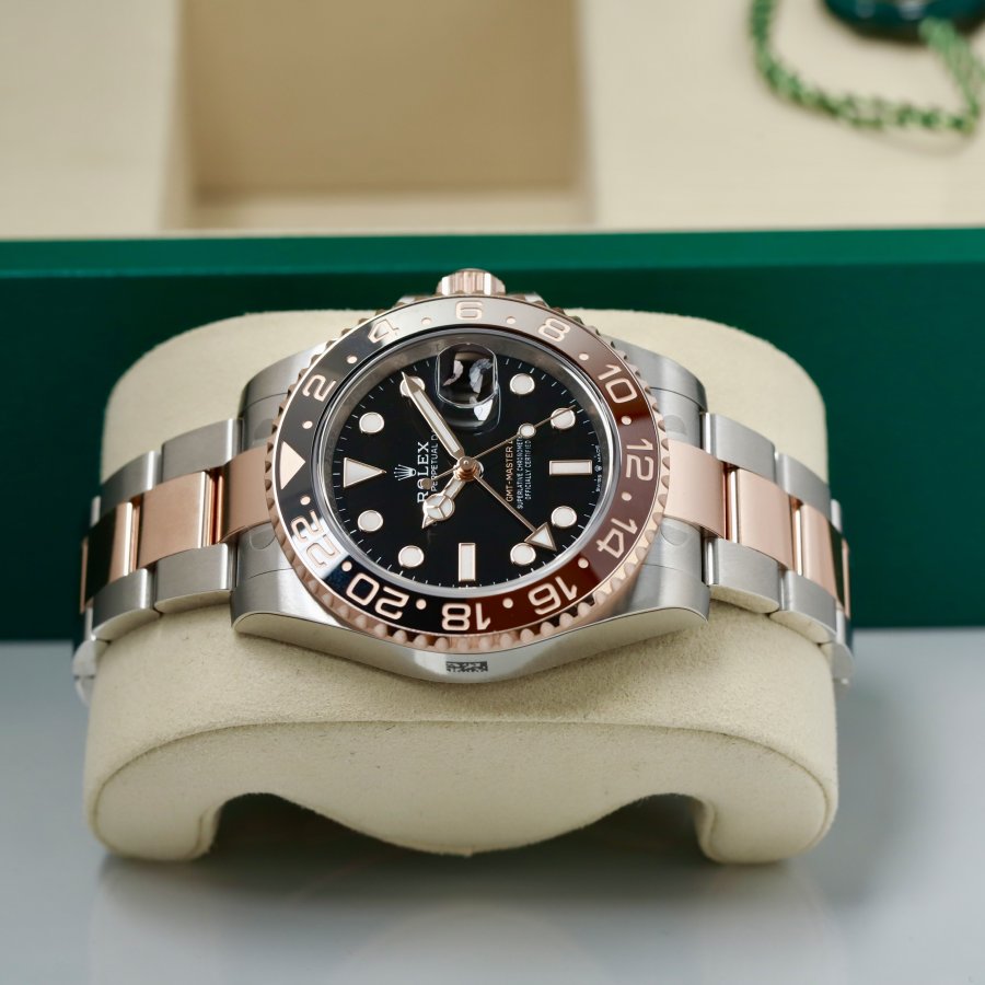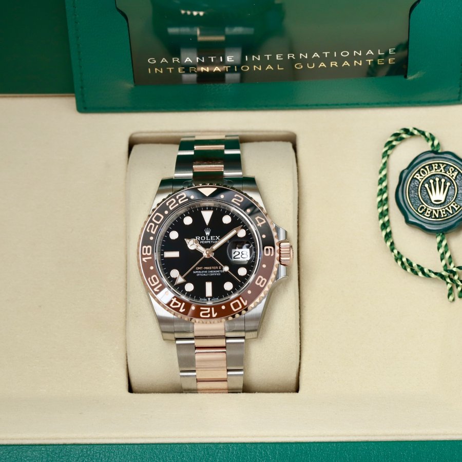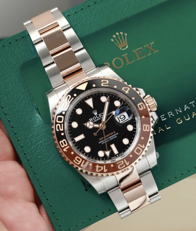 Rolex 126711 Rootbeer GMT Black, Demi Vàng hồng đúc 18k, Size 40mm, Like new fullbox date khá cao 2022 (BHTC), Giao lưu 510 triệu ah