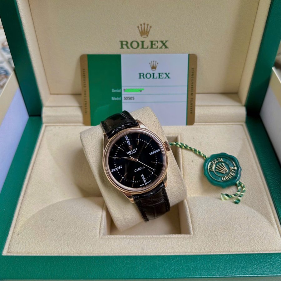 Rolex Cellini 50505 Black Roman, Vàng hồng đúc 18k nguyên khối, Size 39mm, Like new fullbox date khá 2016, Giao lưu 310 triệu (Retail:~650 triệu) ah