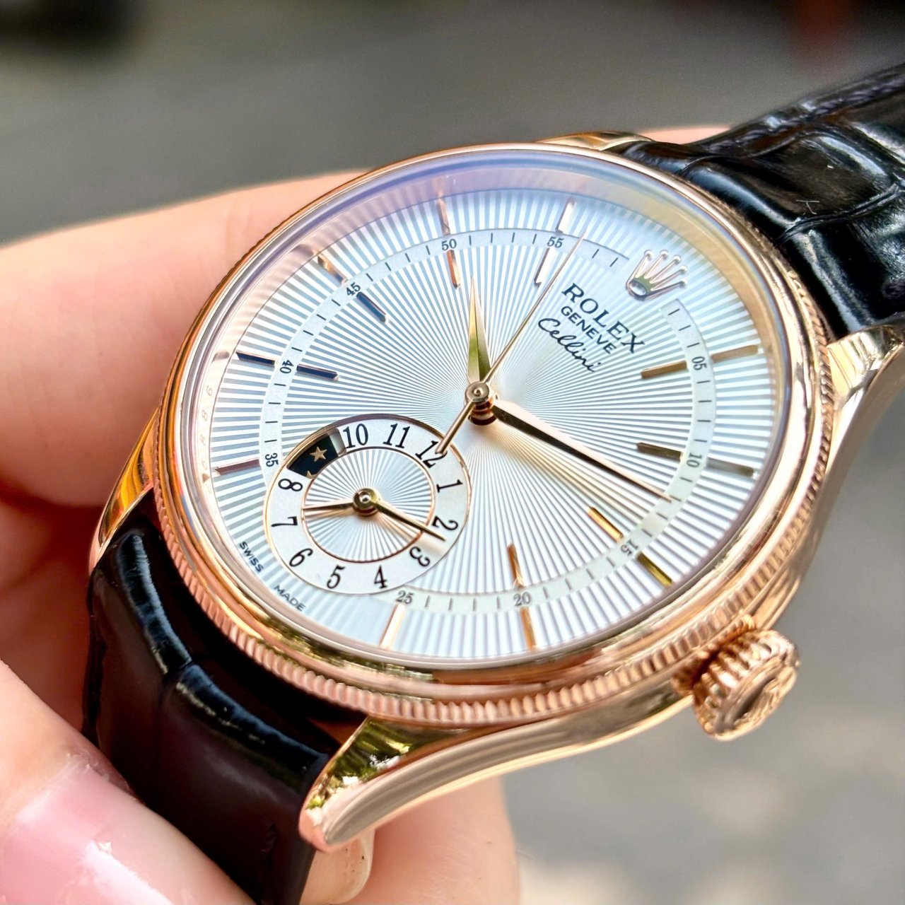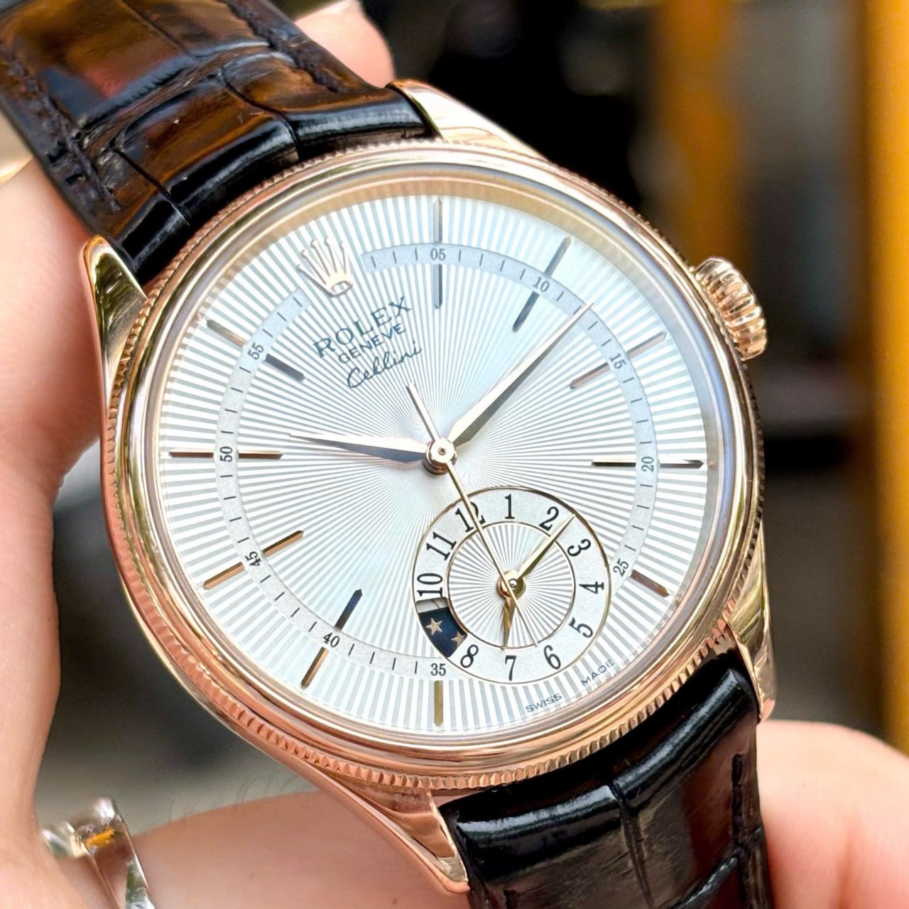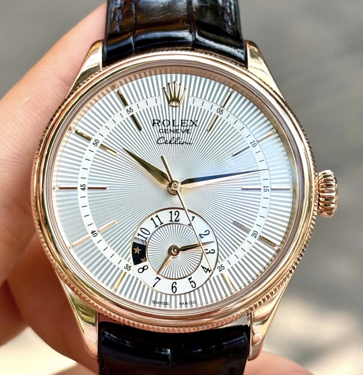 Rolex Cellini Dual Time 50525 Day Night, Vàng hồng đúc 18k nguyên khối, Size 39mm, Like new fullbox date khá cao 2018, Giao lưu 358 triệu (Retail: ~770 triệu) ah