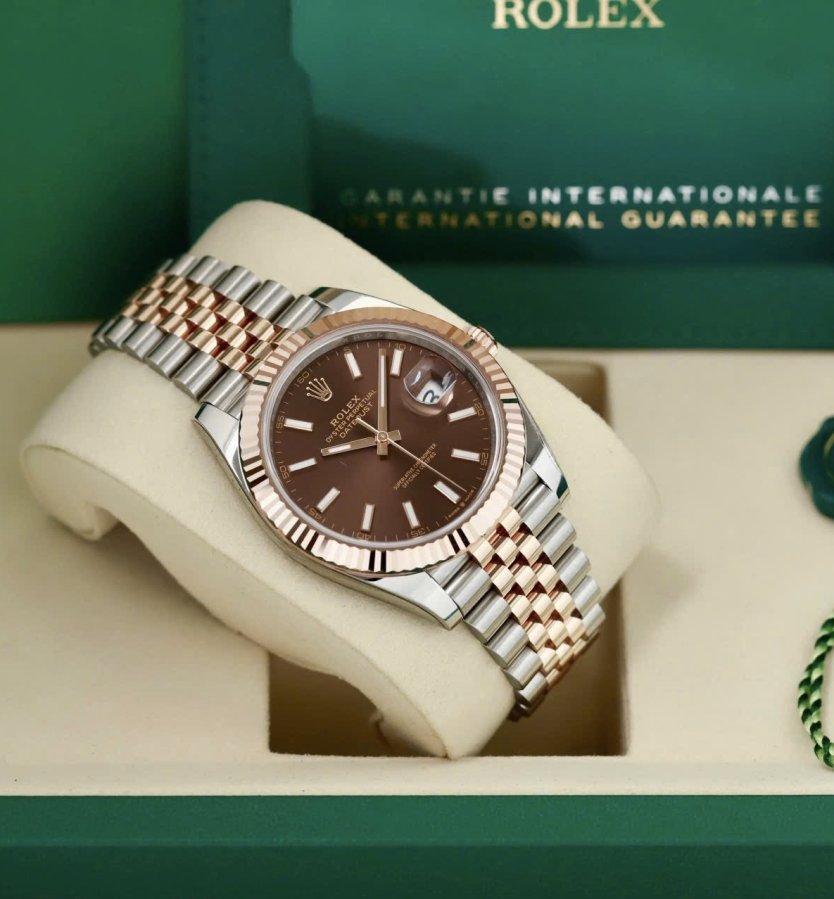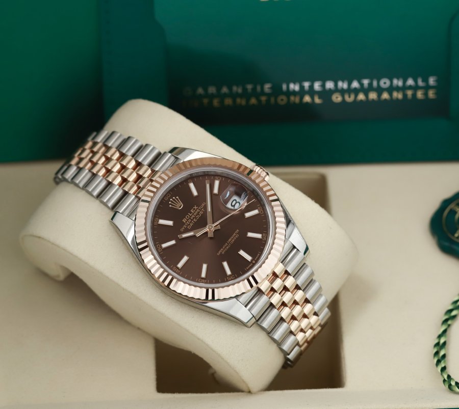 Rolex Datejus 126331 Chocolate Index, Mark2, Demi Vàng hồng 18k, Size 41mm, Like new fullbox date khá cao 2022 (Bảo hành CHTC), Giao lưu 445 ah