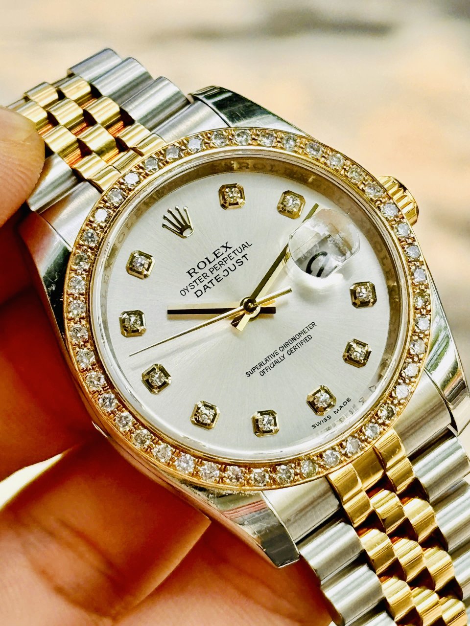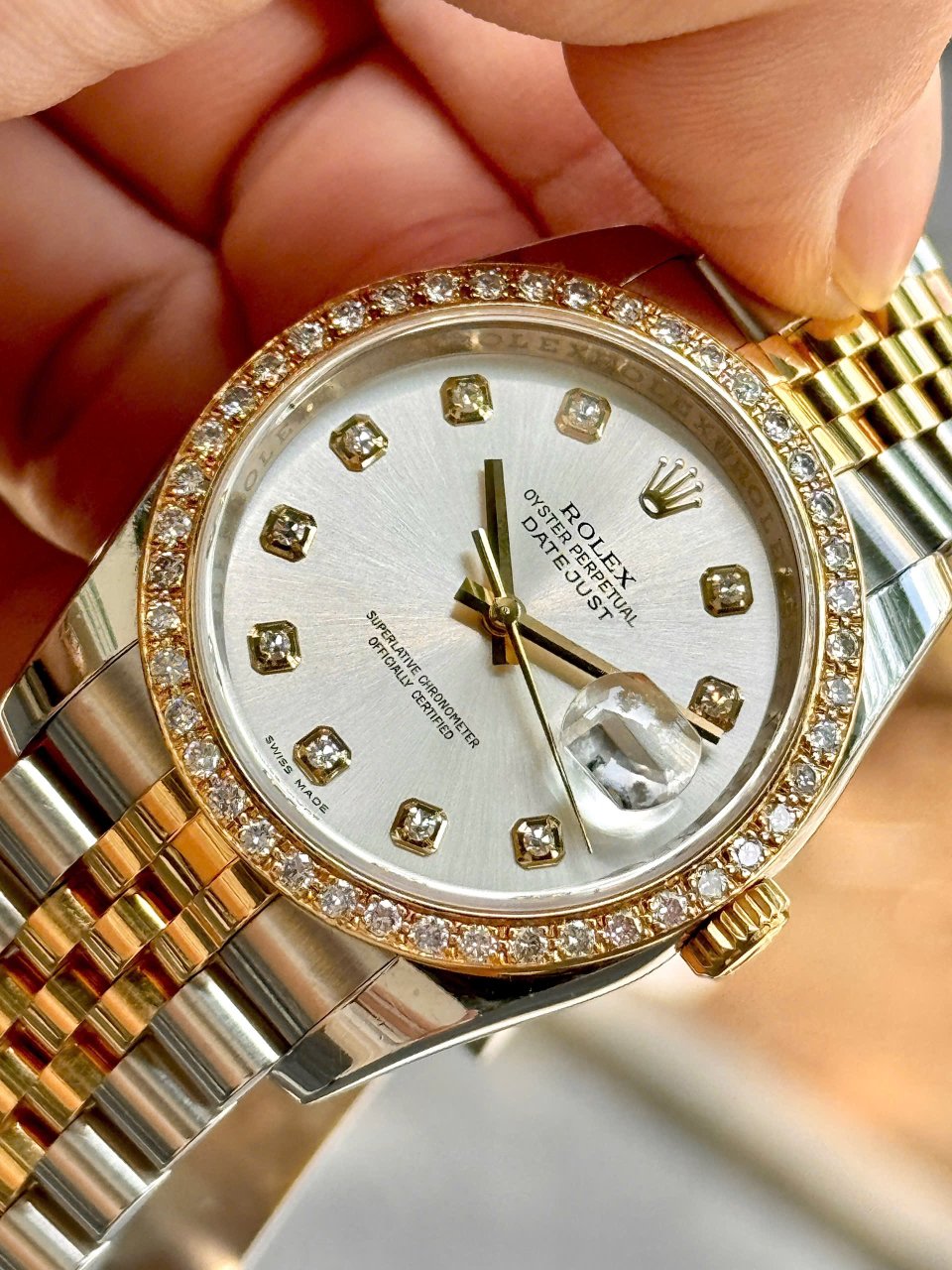 Rolex DateJust 116233 Men trắng Diamonds Gold 18k, Niềng Up Kim Cương thiên nhiên 2.2 li, Size 36mm, Like new fullbox, Giao lưu 248 triệu (Retail: 398 triệu) ah