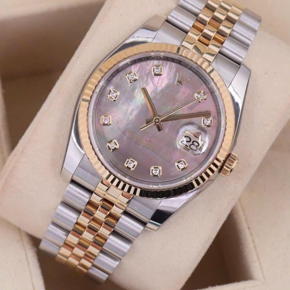 Rolex Datejust 116233 MOP Tím Diamonds Gold 18k, Size 36mm, Like new fullbox date khá cao 2016, Giao lưu 310 triệu (Retail: 479 triệu) ah