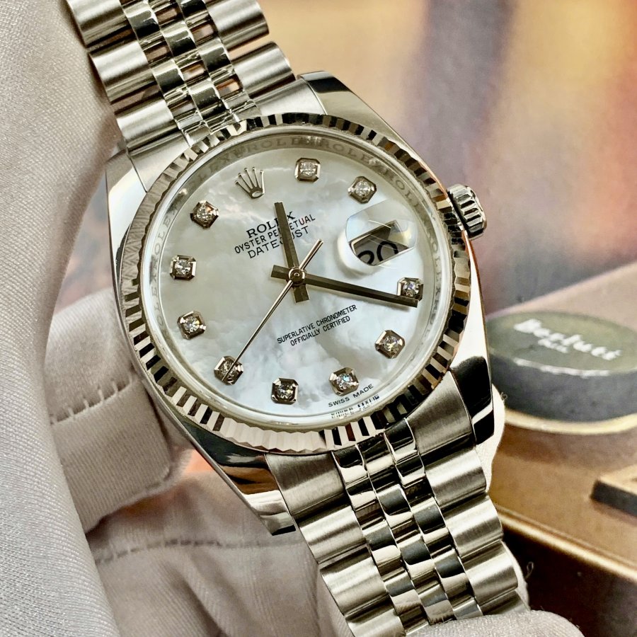 Rolex Datejust 116234 MOP (Khảm trai) trắng Diamonds, Niềng vàng trắng 18k đúc, Size 36mm, Seri Random, Lướt đẹp Only, Giao lưu 258 triệu ah