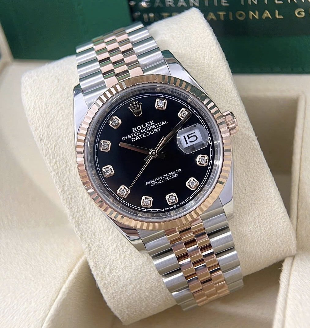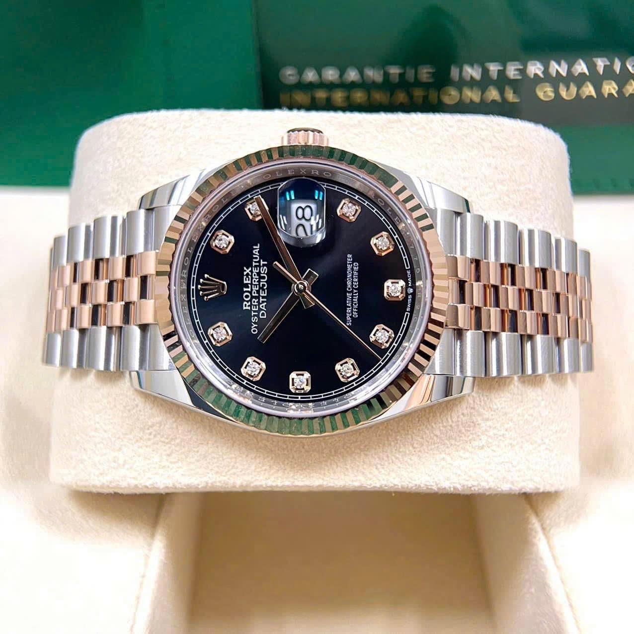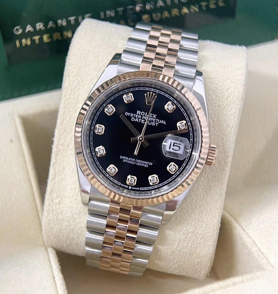 Rolex Datejust 126231 Black Diamonds Jubilee, Demi Vàng hồng 18k, Size 36mm, Like new fullbox date 2020 thẻ chíp NFC, Giao lưu 419 triệu xíu ah