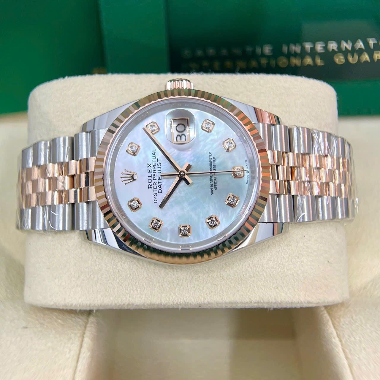 Rolex Datejust 126231 MOP White Diamonds Rose Gold 18k, Size 36mm, Brand New Fullbox 2025, Giao lưu 530 triệu ah