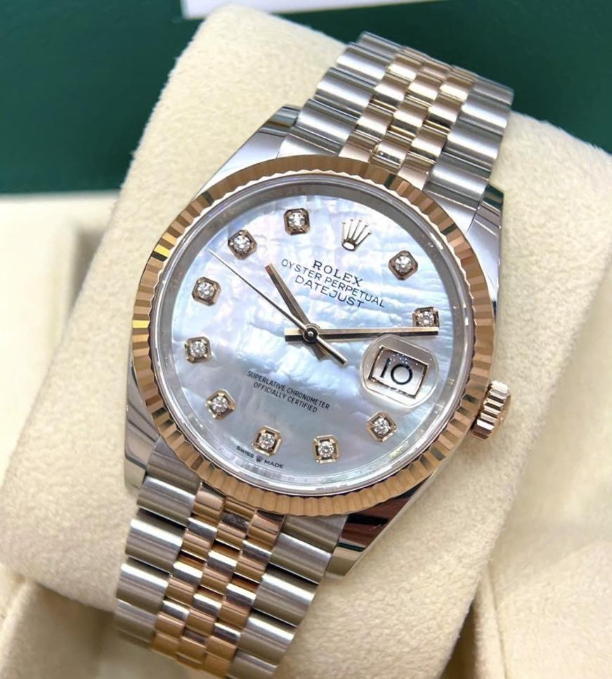 Rolex Datejust 126231 MOP White Diamonds Rose Gold 18k, Size 36mm, Like new fullbox, Giao lưu 439 triệu (Retail: ~ 535 triệu) ah